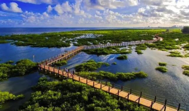 北海金海灣紅樹林景區(qū)位于北海東南海邊,與北海銀灘相連,屬于國(guó)家4A級(jí)景區(qū)。整個(gè)景區(qū)面積約20平方公里,由紅樹林觀光帶、金灘和主園區(qū)三部份構(gòu)成。紅樹林間的海水里生活著潮蟹、鼓蝦等多種海洋動(dòng)物,這是生長(zhǎng)在北海沿岸的一種稀有的木本胎生植物——紅樹林。紅樹林作為美麗的海上森林,是海岸帶生態(tài)關(guān)鍵區(qū),在凈化空氣和海水水質(zhì)、減輕海洋污染等方面效果顯著,北海沿岸大批的紅樹林成為城市的一張生態(tài)“名片”。