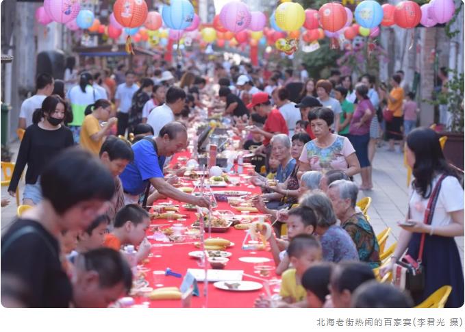 秋日“開漁季”,大量海產品新鮮上市,正是享受各種海味的好季節(jié)。被譽為“深夜食堂”的僑港風情街熙熙攘攘、人頭攢動,成為游客品美食、賞月景的游玩好去處。老城景區(qū)開展的“中秋百家宴、幸福鄰里情”不僅拉近了鄰里之間的距離,同時還通過美食分享弘揚了地方飲食文化特色,營造了濃濃的中秋闔家團圓的節(jié)日氛圍。