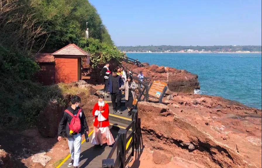 2020年12月29日,潿洲島南灣鱷魚山景區(qū)正式晉升國家5A級旅游景區(qū),旅游熱度和知名度持續(xù)攀升,受到全國各地游客的廣泛關注,潿洲島一躍成為旅游熱點,游客借著元旦假期,開啟一段火山海島探秘之旅。作為潿洲島旅游的核心景點,南灣鱷魚山景區(qū)典型的火山地質(zhì)遺跡、奇特的海蝕微地貌景觀、豐富的生態(tài)旅游資源吸引不少游客前來打卡游玩,探火山、賞海景、揚帆出海,游客們在這里體驗海島的非凡魅力。在晴天的映襯下,大海一片蔚藍,游客將南灣鱷魚山景區(qū)的壯麗海景盡收眼底,紛紛拿出手機拍照留念。