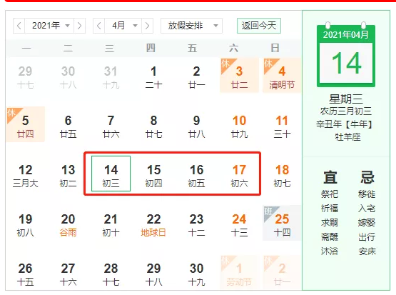 根據(jù)《廣西壯族自治區(qū)少數(shù)民族習(xí)慣節(jié)日放假辦法》(廣西壯族自治區(qū)人民政府令第98號(hào)),經(jīng)自治區(qū)人民政府同意,現(xiàn)將2021年“壯族三月三”放假有關(guān)事項(xiàng)通知如下:4月14日(農(nóng)歷三月初三,星期三)、4月15日(農(nóng)歷三月初四,星期四)放假,4月16日(星期五)調(diào)休,即4月16日(星期五)休息,4月18日(星期日)上班!皦炎迦氯奔倨谄陂g,各地各部門要按要求做好常態(tài)化疫情防控工作,妥善安排好值班和安全、保衛(wèi)等工作,遇有重大突發(fā)性事件,要按規(guī)定及時(shí)報(bào)告并妥善處置,確保人民群眾度過(guò)平安祥和的節(jié)日。