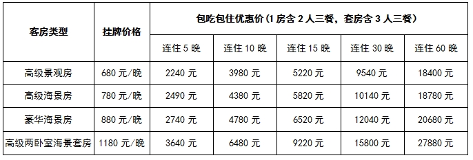 4)、高級兩臥室套房增加第四位候鳥入住(成人)收費120元/人/天(含三餐)。
