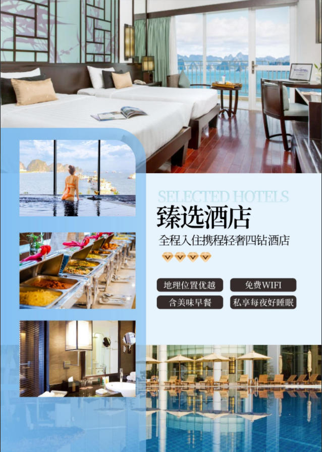 1、酒店:越南全程升級(jí)住宿下龍四星、河內(nèi)四星標(biāo)準(zhǔn)雙人間,(行程中用房以安排兩人間為標(biāo)準(zhǔn),在不影響房數(shù)的情況下夫妻可以安排一間,若出現(xiàn)自然單間時(shí),我社盡量安排三人間或拼房,如酒店無(wú)三人間,我社有權(quán)采取拆夫妻或加床處理,若客人要求開(kāi)單間,需要補(bǔ)交單人房差400元/人。