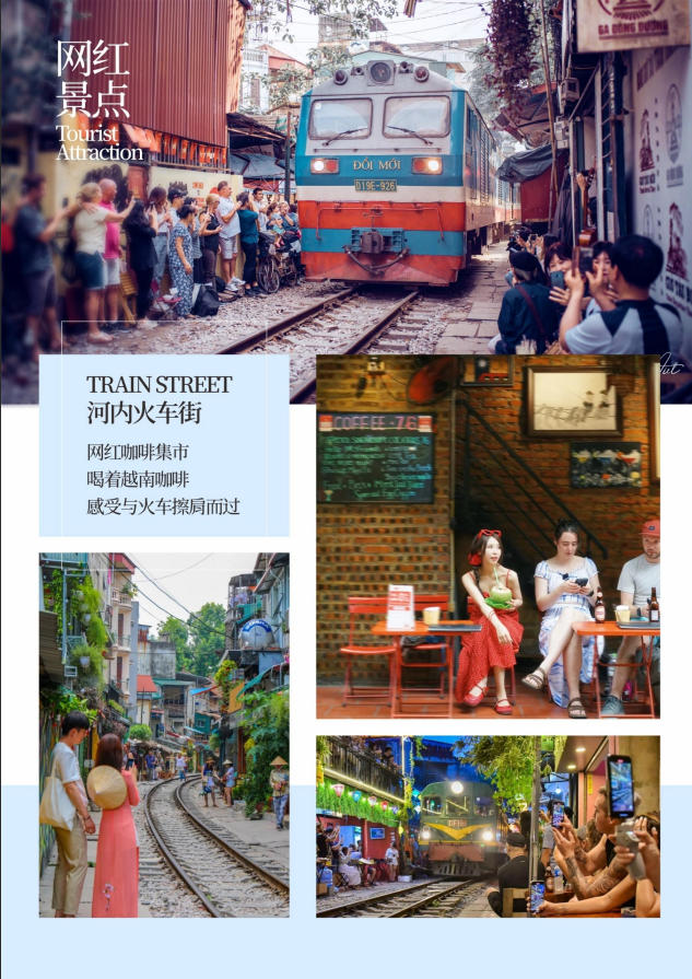 隨后前往網(wǎng)紅打卡地:本地人才知道的河內(nèi)【火車(chē)街】。有一條鐵路,穿越河內(nèi)人的前廊,沉浸在人們的生活中。穿越這里的“傳奇”鐵路彎道吸引了眾多國(guó)際游客。從它在外國(guó)報(bào)紙上刊登作為每次來(lái)河內(nèi)必去的地方的那一天起,火車(chē)附近就非常繁忙。但它的安靜空間并沒(méi)有被打破。來(lái)自世界各地的游客前來(lái)參觀,他們都在“培育”這個(gè)村莊,因?yàn)檫@里的人們每天都在保護(hù)它。馬路兩旁是一排排房子緊挨在一起,有著可愛(ài)的小攤位和茶點(diǎn)咖啡館。當(dāng)火車(chē)緩緩駛過(guò),超近距離感受到火車(chē)的轟鳴和力量,體驗(yàn)與火車(chē)“零距離”接觸的驚險(xiǎn)與刺激。超驚險(xiǎn)的感覺(jué)。剀疤崾荆捍藶橘(zèng)送項(xiàng)目,如遇交通管制無(wú)法進(jìn)入游覽,不退費(fèi)用。)