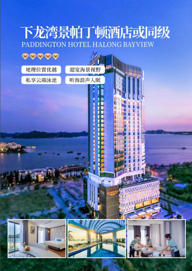 下龍(攜程五鉆):DeLaSea Ha Long Hotel,迪里奧羅酒店&度假村,下龍宮殿景觀大酒店,下龍灣景帕丁頓酒店,孟清下龍中英豪華酒店或同級(jí)別酒店。