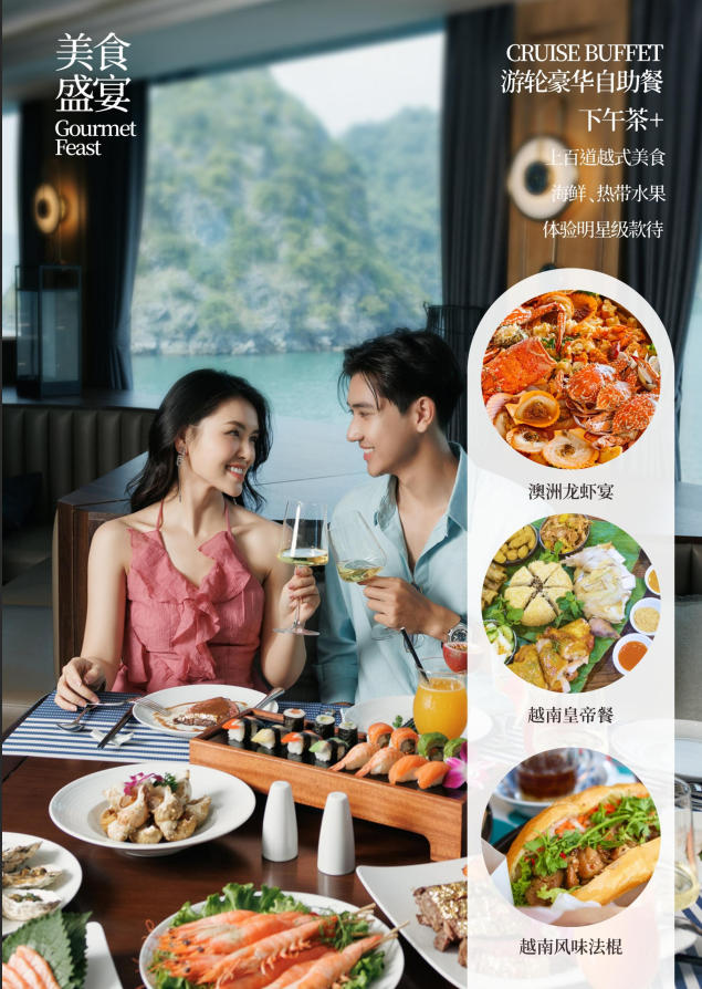 3、用餐:全程用餐7正3早,4正*餐標(biāo)30元/正+1正豪華游輪自助午餐+下午茶+1正特色澳洲龍蝦宴+1正越南特色簸箕餐