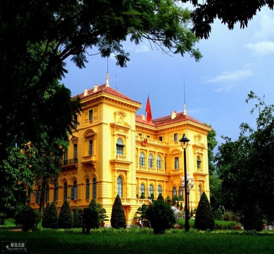 外觀主席府:主席府是一橦極漂亮的法國(guó)式建筑,在法屬期間, 曾是法駐印度支那總督居住和辦公的地方;
