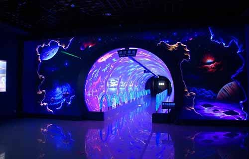 國內(nèi)絕無僅有的熒光純手工壁畫,由日本著名熒光畫大師遠山先生花了3個多月畫成,價值超三百萬元。整個壁畫描述了海洋形成、發(fā)展過程和未來的遐想,即海洋的昨天、今天和未來,在這里你可以完全放飛你的想象;該壁畫另一奇妙之處:如果關(guān)閉熒光燈,壁畫會變成一面白墻,什么也不見,但是打開熒光燈后,畫面栩栩如生,層次分明,你不得不驚嘆大師的高超技藝。