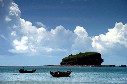 在高空鳥瞰,面積為25平方公里的潿洲島猶如一枚翡翠漂浮于湛藍(lán)的大海中。踏上這座火山島,撞入眼簾的是奇特的海蝕海積地貌與火山熔巖景觀――豬仔嶺憨態(tài)可掬,鱷魚石栩栩如生,滴水巖泉水叮咚,紅色火山巖好象剛剛噴發(fā)過(guò)……位于盛堂村的法國(guó)天主教堂,更是在19世紀(jì)末就落戶島上,材料全部取于島上的珊瑚、巖石,歷經(jīng)百年歲月,依然堅(jiān)固如初。四百多年前,明代著名戲劇家湯顯祖游覽該島,寫下“日射潿洲廓,風(fēng)斜別島洋”的詩(shī)句。