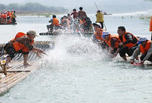 萬(wàn)泉河竹筏漂流以其特有的江南水鄉(xiāng)情調(diào)和放歌田園、縱情山水的意境吸引了大批游客,在層巒疊嶂的群山中,景區(qū)內(nèi)氣候宜人、風(fēng)景秀麗、清泉密布,游人們這里可以買(mǎi)了水槍和防護(hù)的雨衣在竹筏上玩打水仗,坐在土制竹筏上順?biāo)鳎路鹬蒙碛谏剿g,流連于田園風(fēng)光,使人忘記了都市的喧囂和煩雜,感受到大自然的神奇。