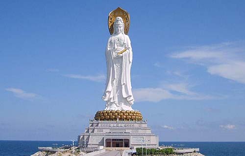 南山寺地處海南省三亞市西南40公里的南山腳下,是中國最南端的寺廟,也是建國后國務(wù)院首次批準(zhǔn)的新建的最年輕的寺廟。站在寺前的觀海平臺遠(yuǎn)眺,依稀可見幾座大山在云霧中若隱若現(xiàn), 南山佛教文化苑。這時你會感到李白“忽聞海上有仙山,山在虛無縹緲間”的詩句用在此處再合適不過。海面上幾葉輕舟在微波中蕩漾,描繪出一幅蓬萊仙境的圖案.而南山寺最著名的是創(chuàng)造世界之最,高達(dá)108米,造價(jià)6億人民幣的海上觀音,還有價(jià)值1.92億元人民幣的世界手工藝之一絕的國寶——世界首尊金玉觀世音菩薩塑像,因其奇絕的藝術(shù)魅力和觀世音菩薩與南山的殊緣吸引著八方游人.南山寺無處不在顯示著博大精深的佛教文化和中國傳統(tǒng)文化,是世所罕見,震驚世界的佛教名山勝地。