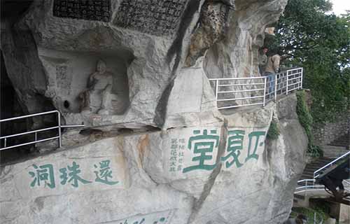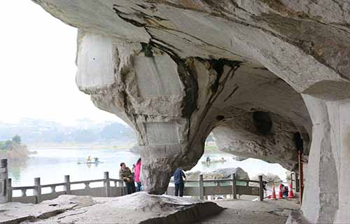 還珠洞位于伏波山的山腹,坐船或從陸地步行入洞。洞內(nèi)高4—6米,寬 6—8米,總長120余米,面積600余平方米。還珠洞內(nèi)的文物石刻很多,是伏波山的精華所在。還珠洞還是唐朝除西山的慶林寺外,又一個(gè)佛教圣地。信奉佛教的僧徒們,在洞內(nèi)雕塑了許多佛像。千佛巖中有許多尚未成形的粗鑿佛像,猶如風(fēng)化剝蝕的斧鑿痕。